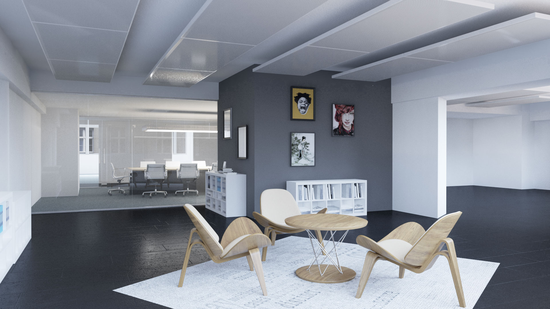 Architectual visualization to show furnishing examples and help real estate agents to communicate the possibilities of the “Zentrum Rennweg” building.