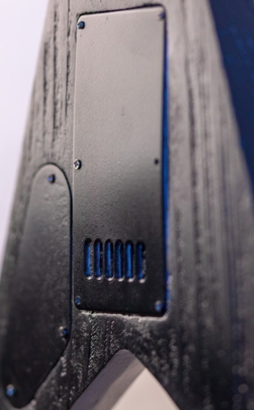Why 1:2 scale? Because it’s the sweet spot scale for detail, handling, material costs and „playability“. It’s the perfect size to display as a decorative element and rock along to your favorite metal band.